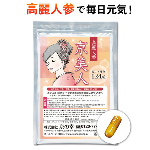 【ポスト投函 送料無料】高麗人参「京美人」1ヶ月分124粒(安心 安全 健康 健康食品 サプリ サプリメント 疲労回復 高血圧 発汗 ほてり イライラ 冷え性 不眠 倦怠感 持久力 集中力 高麗人参 6年根 サポニン Rb1)
