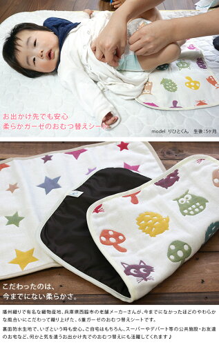 日本製 6重ガーゼ おむつ替え防水シート / おむつ替えマット オムツ替え マット 新生児 ベビー 男の子 女の子 マタニティ 出産祝い 内祝い 出産準備 コットン ガーゼ 国産 ギフト